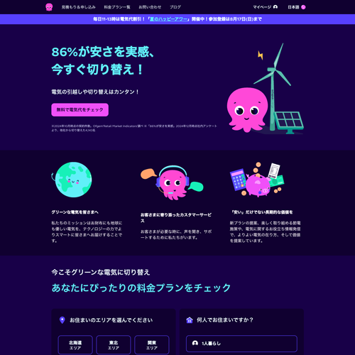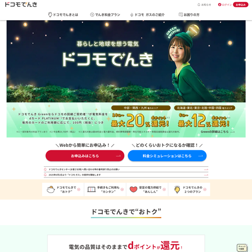 - グリーン電力に特化!再生可能エネルギー源によって発電された電力で環境に優しい