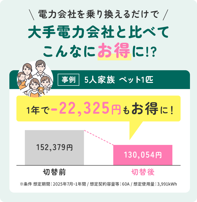 「電力会社を変えるだけで、年間2万円安くなりました!」